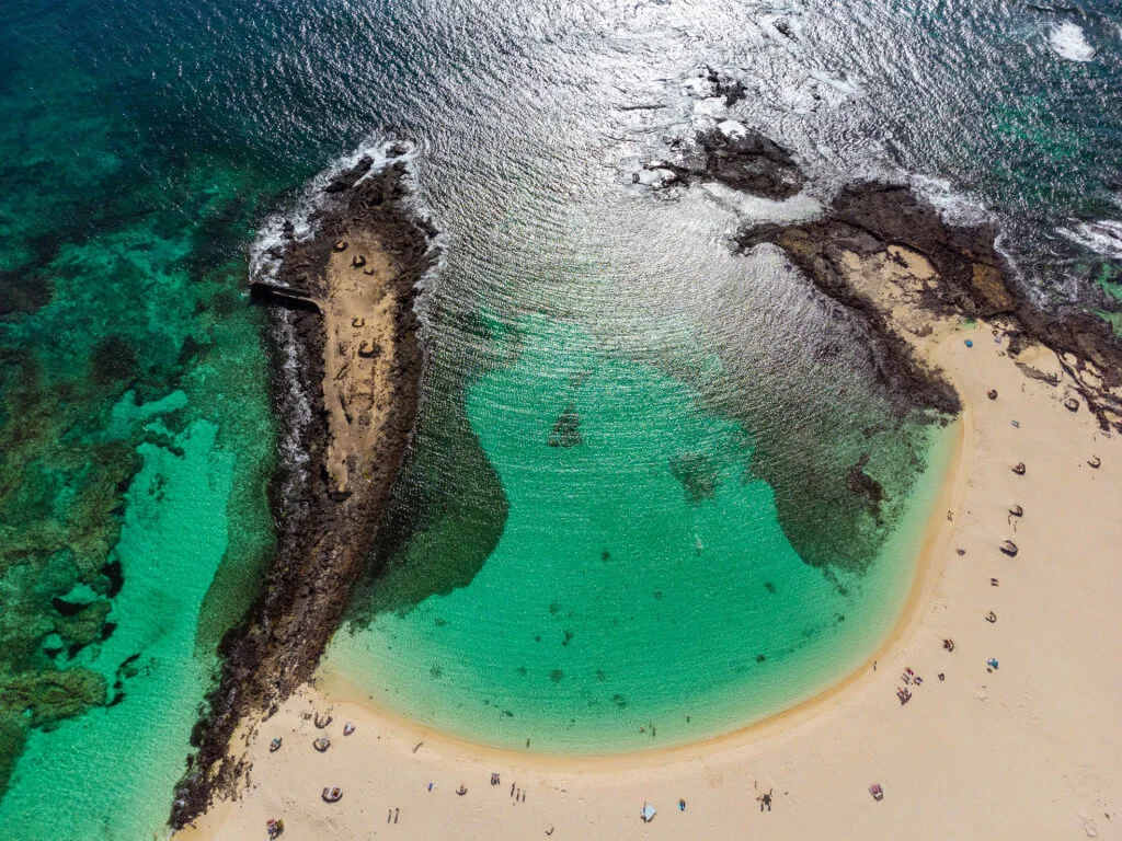 🏝️ Következő állomásunk El Cotillo, ez a hangulatos kis tengerparti városka híres természetes lagúnáiról, ahol megmártózhatsz a kristálytiszta vízben. Hozz fürdőruhát, mert nehéz lesz ellenállni!